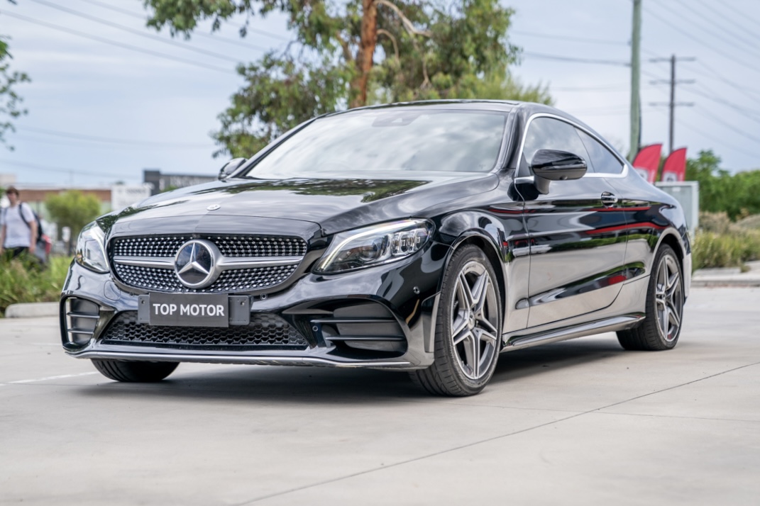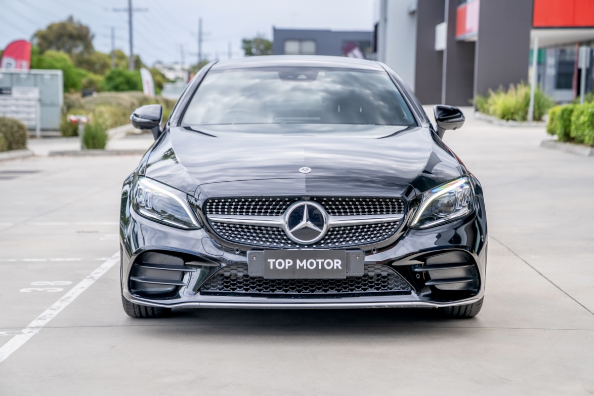 2019 MercedesBenz C200 coupe in sleek black with 83,000 km. Well equipped with frameless doors, 360 camera, blind spot assist, memory seats and a multifunction steering wheel.